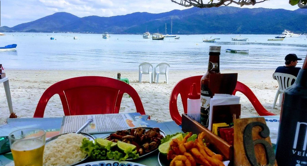 Restaurante pé na areia, bem em frente ao mar, especializado em frutos do mar com destaque para camarões e peixes. É citado como lugar perfeito para petiscos de praia, com mesas próximas à água e clima bem informal.